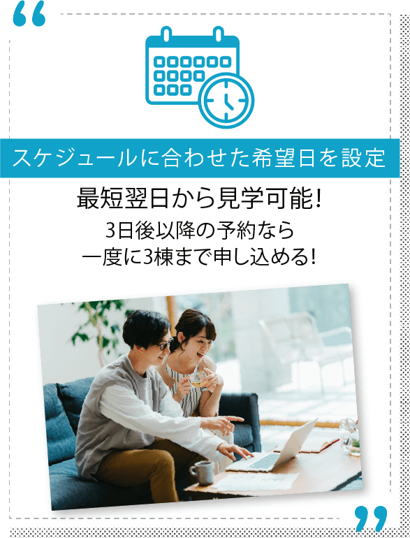 ※特典の配布条件は、下部「見学予約へ」クリック後の「モデルハウス見学予約フォーム」からご確認ください。